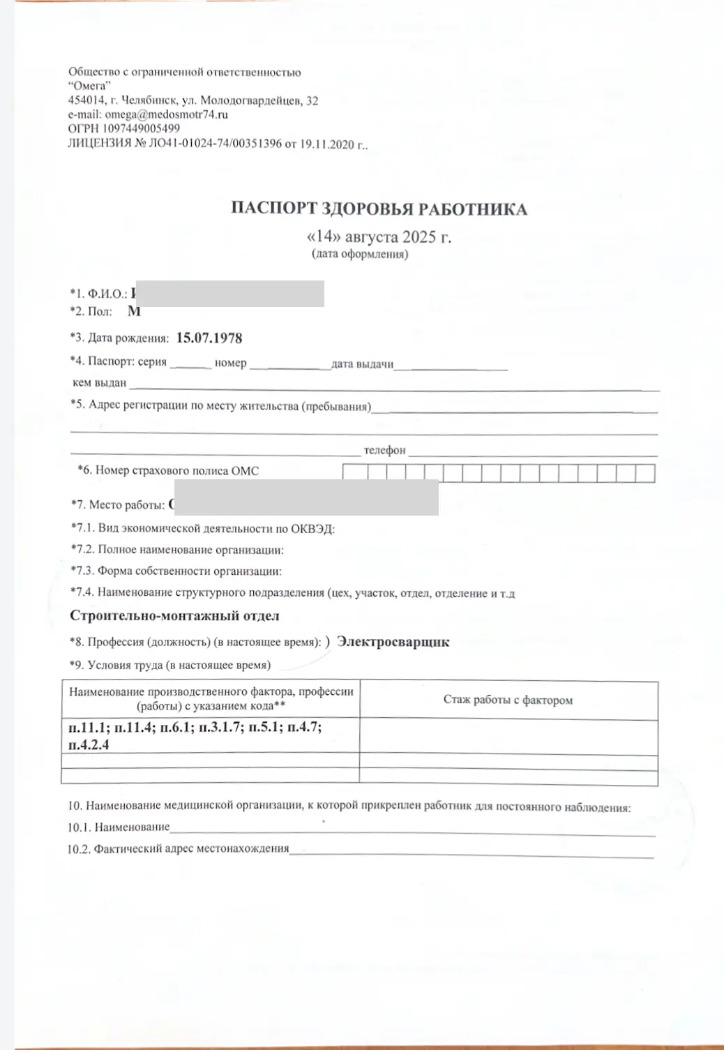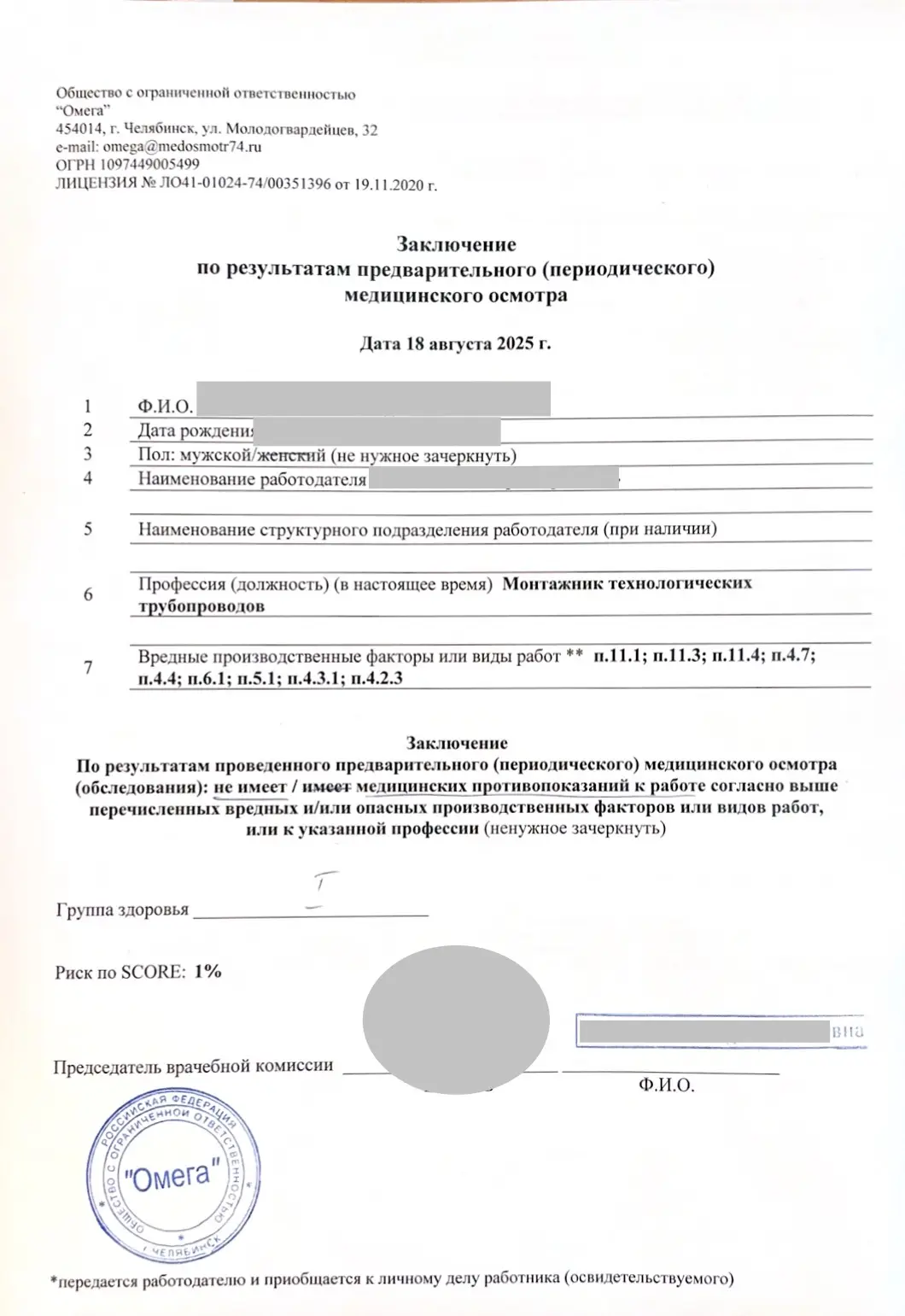 В среднем, стоимость предварительного осмотра в Челябинске начинается от 1500 рублей за базовый комплект и может доходить до 5000-7000 рублей для специальностей с большим списком требований (например, для работ в Районах Крайнего Севера ).