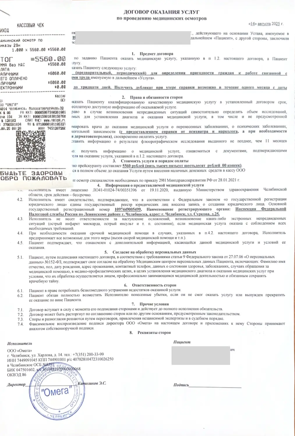 ✅ Официально: Заключения и медкнижки установленного образца, действительны для всех работодателей Челябинска и области.